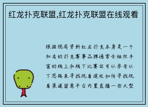 红龙扑克APP下载与安装 你可以通过以下方式下载红龙扑克APP: | 操作步骤 | 关键说明 | | :-- | :-- | | 访问官网 | 在浏览器中输入官方网址 访问官网。在官网首页通常能找到明显的下载按钮。 | | 设备适配 | 无论是安卓还是iOS设备,都可以在官网上找到对应的应用程序版本。 | | 安卓安装 | 下载APK文件后,安装前需进入手机「设置」>「安全设置」> ...